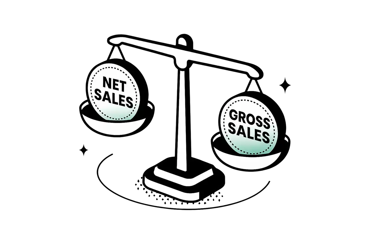 Gross sales is the total revenue from all orders before any deductions. Net sales is what your store actually keeps after subtracting returns, allowances, and discounts. Both numbers matter, but they tell very different stories, and most ecommerce merchants are making decisions based on the wrong one.